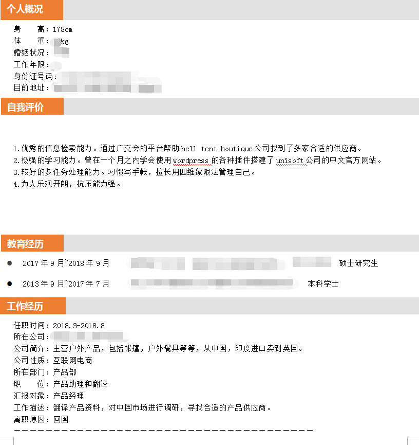 加入本司会员后 成功推荐至 知名实业股份有限公司 翻译岗(兼职其他工作)