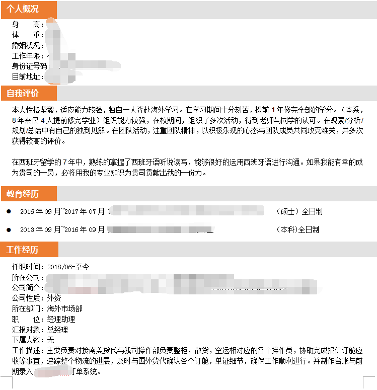 加入本司会员后 成功推荐至 500强企业 采购总监助理的岗位
