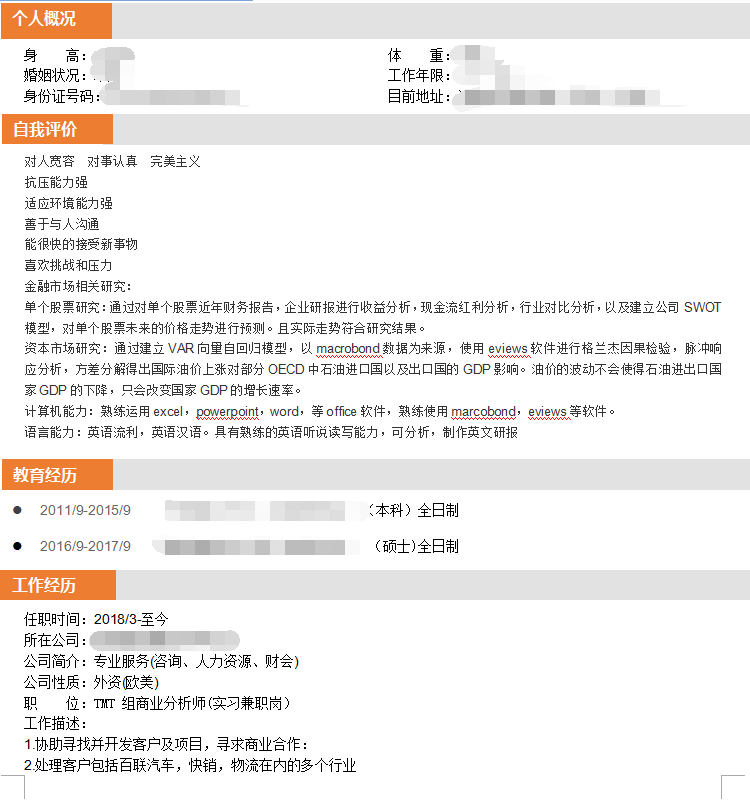 加入本司会员后 成功推荐至 知名外资咨询公司 咨询顾问的岗位