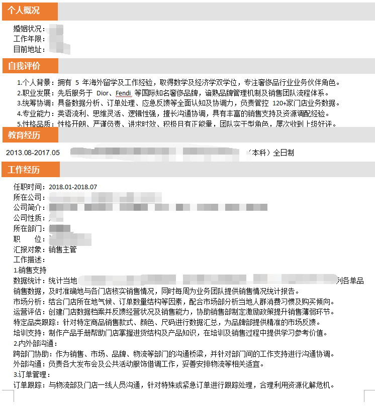 加入本司会员后 成功推荐至 知名外资咨询公司 项目助理 的职位
