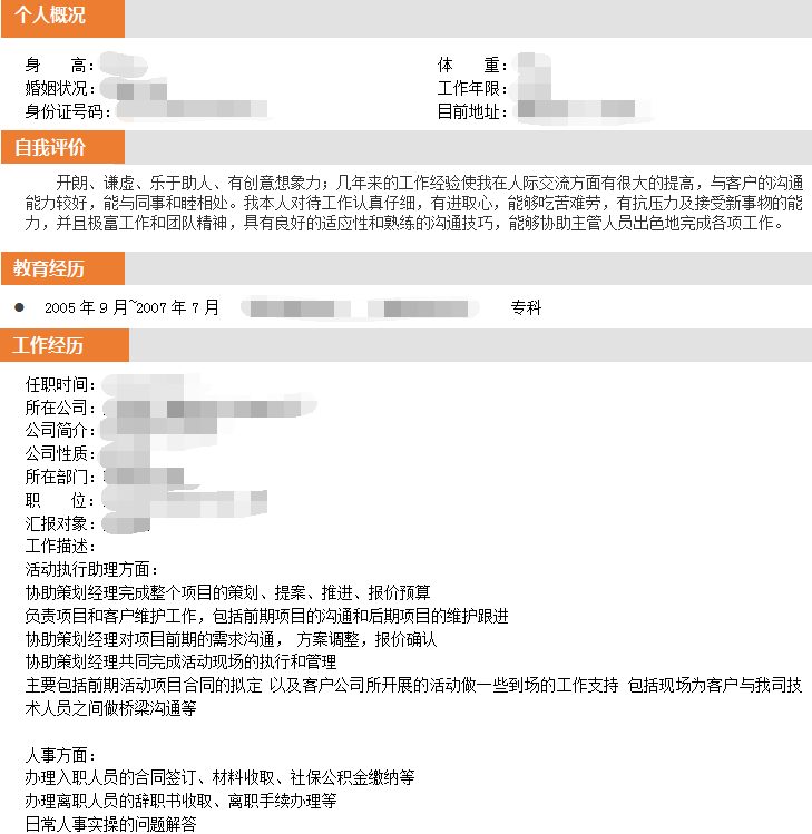 加入本司会员后 成功推荐至 知名投资股份有限公司 行政专员的职位