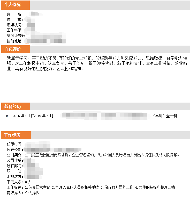 本科未毕业 未婚女性 希望进入一家大型的 能够促使自己加快成长的企业
