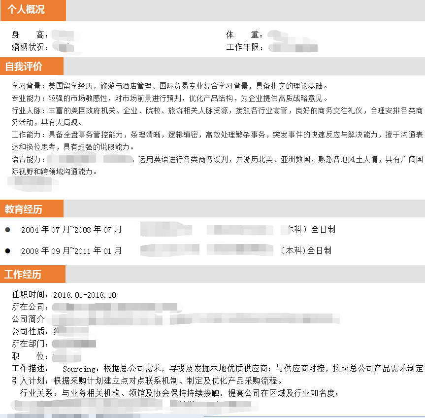 加入本司会员后 成功推荐至 大型外资企业服务有限公司 高级客户经理的职位