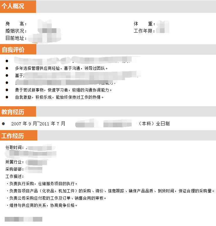 加入本司会员后 成功推荐至 知名中外合资咨有限公司 采购主管的职位