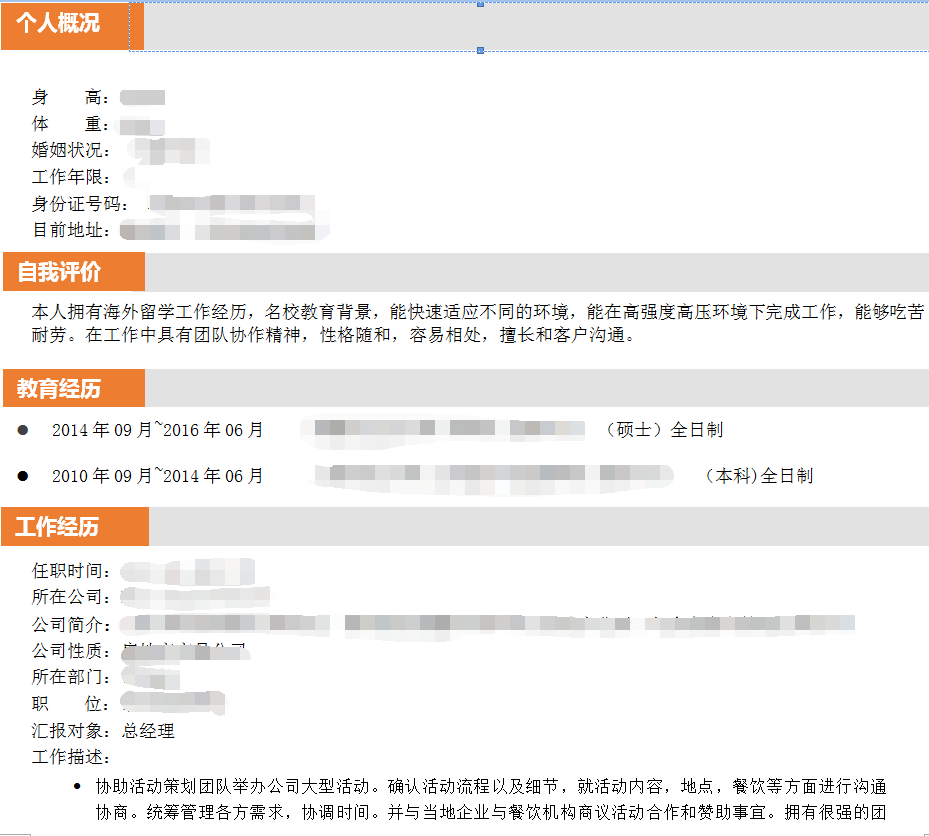 加入本司会员后 成功推荐至 大型外资咨询公司 商务助理的职位