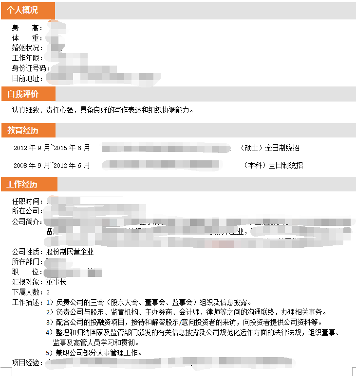 加入本司会员后 成功推荐至 国企旗下公司 股东办主任的职位