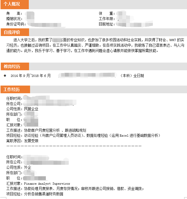 加入本司会员后 成功推荐至 知名外资咨询公司 市场的职位