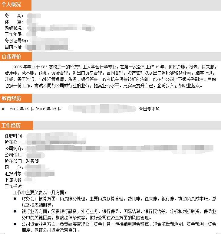 加入本司会员后 成功推荐至 大型上市股份有限公司 财务主管的职位