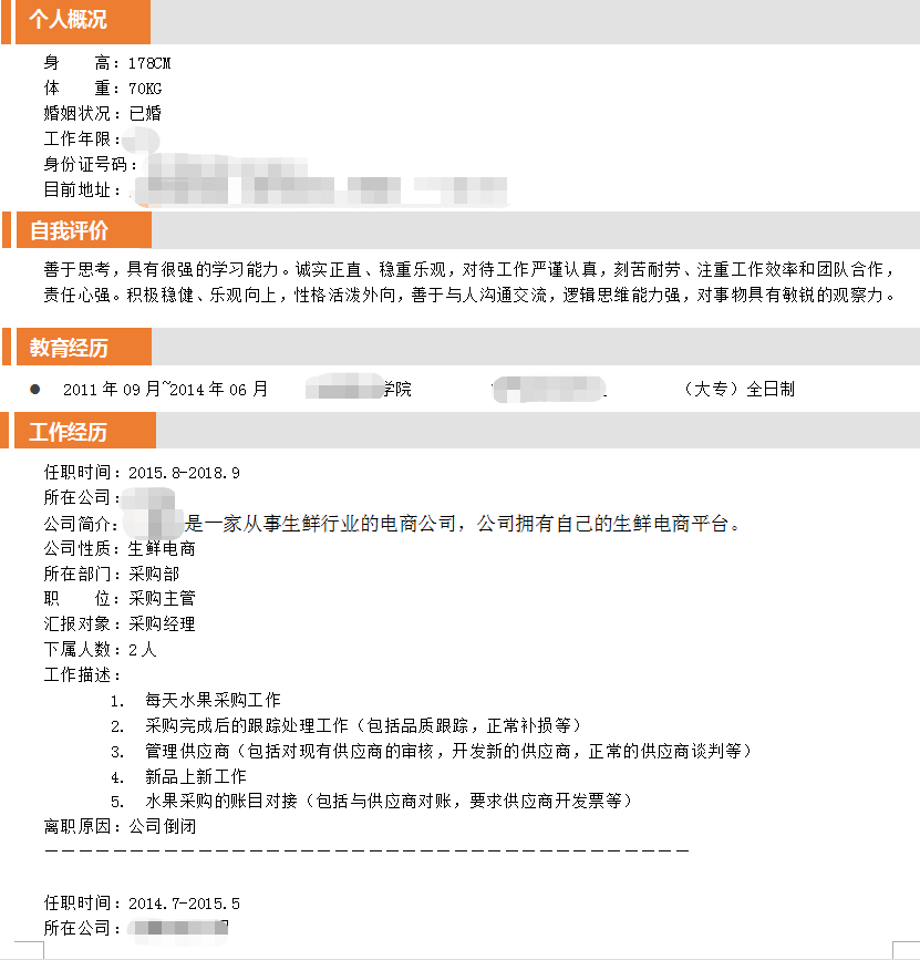 加入本司会员后 推荐成功至 知名连锁采购企业 采购专员的职位