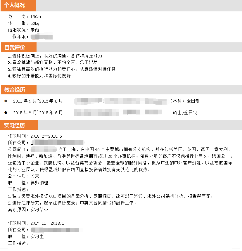 硕士毕业 未婚女性 非常想进入一个大的 外资企业 平台好 发展前景好