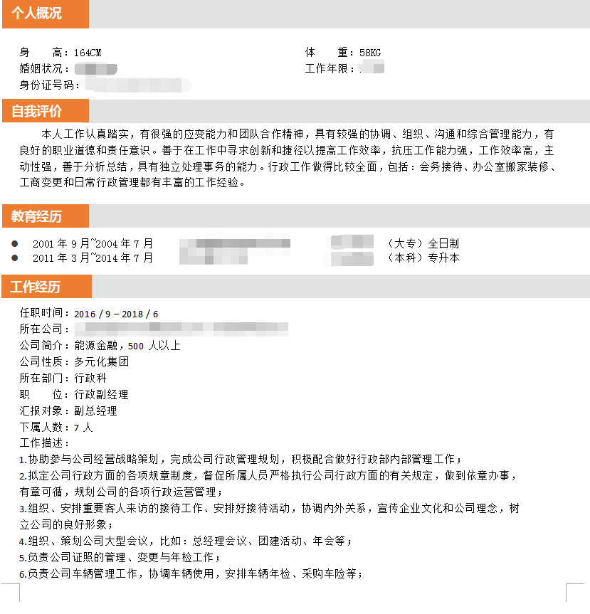 加入本司会员后 成功推荐至 大型多元化业务集团公司 行政主管的职位