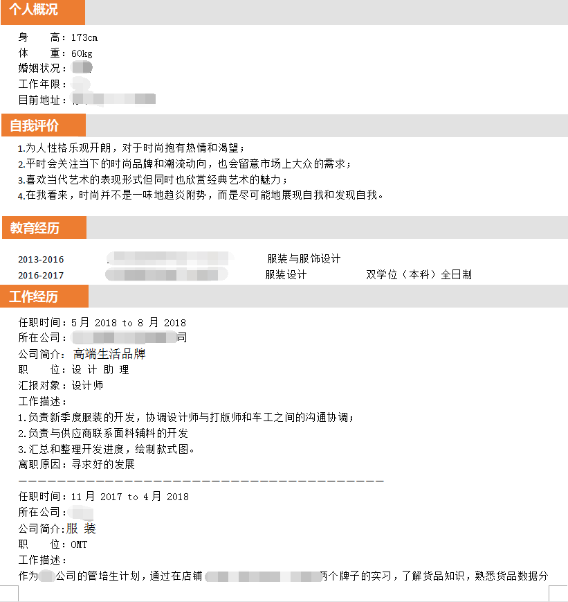 在加入本司会员后 成功推荐至 某知名合资有限公司 服装设计的职位