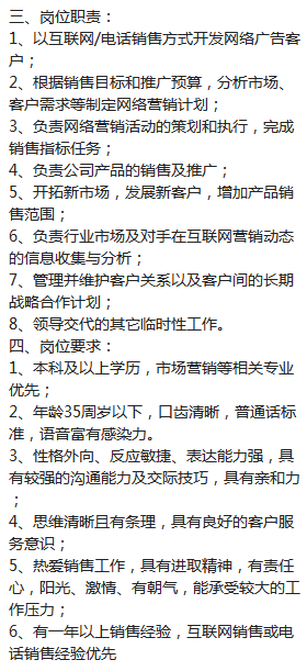 大型上市央企背景制造行业企业招互联网营销,薪资open可谈,行业背景不限,要求全本以上学历,35岁以内,至少一年以上相关经验,懂得互联网套路。补充公积金,年底14薪,提供一日三餐免费食宿。坐标松江新城附近。