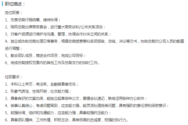 岗位【总助/总秘 】