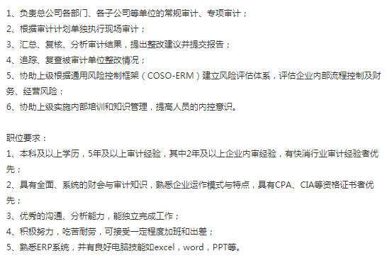 岗位【营销审计经理】