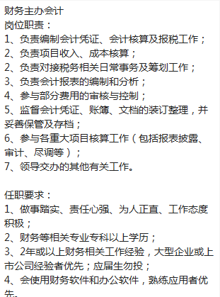 要求:全日制本科,有财务岗相关2年或以上经验(大企业背景 新三板或上市公司 或大型制造业)。薪资7-10k+五险一金全额+年底bouns,朝九晚六,双休,地址:近10号线五角场