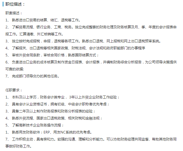 有没有离职的贸易公司背景的财务要找工作,民营集团公司要财务经理10-15k+13薪+补贴,9号线商城路。希望做过进出口退税,人民币汇率。9/7号之前能到岗的
