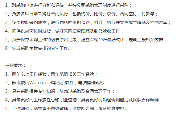 办公家具行业要采购,男女不限,有采购一年左右经验就行,不需要开发供应商,英语书面良好,薪资6-8k,五险一金全额,年底14薪,全勤300,8天带薪病假,上班地点:9号线 小南门