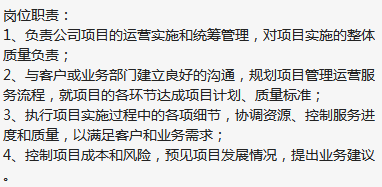 纳斯达克上市公司,招项目经理,男生,计算机专业优先,有项目管理经验,薪资7-9k+全额交金+补贴+年终奖金,上班地点2号线金科路,jd如下: