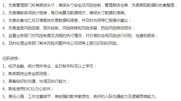 岗位【期货结算员】