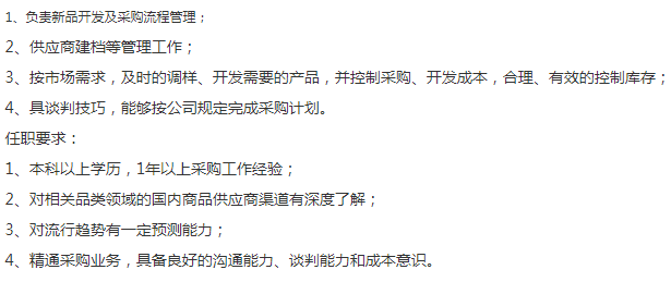 全球领先的时尚休闲百货品牌,招采购助理,本科以上学历,男女不限,一年以上工作经验,薪资6-8k,年底13薪+额外bonus, 零售行业背景优先,9号线合川路上班