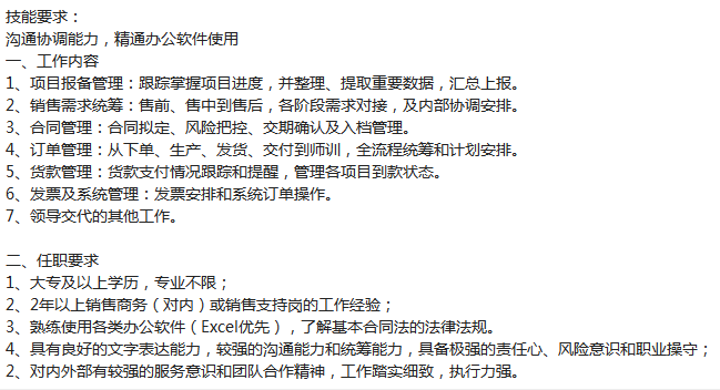 教育科技公司要销售支持,薪资7-10k,女孩子,做过合同管理、订单管理,会操作ERP系统,最好是30岁以内最好,周末双休,早9:00--晚5:30,上班地点:9号线 台儿庄。急招岗位
