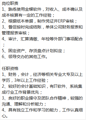 要求:女生,大专以上学历,2-3年工作经验,薪资7-8k,五险一金全额,年底13薪,生日福利,过节福利,朝九晚六,双休