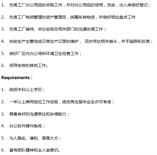 有没有宝山附近想要找个轻松稳定不加班的行政工作的,合资医疗公司工厂要,主要负责工厂一些简单行政工作,薪资7-8k,大专以上,做过行政就行~办公环境好,8-5点,双休
