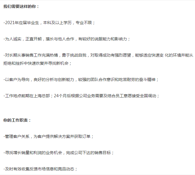 500强外企要销售管理培训生,6-8k。1号线汶水路上班