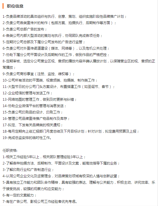 品牌活动策划部长