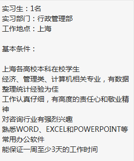 知名ppp项目咨询公司,要招一个行政实习生,21年毕业,主要做一些做一些数据整理还有IT系统的事,薪资120-150元/天