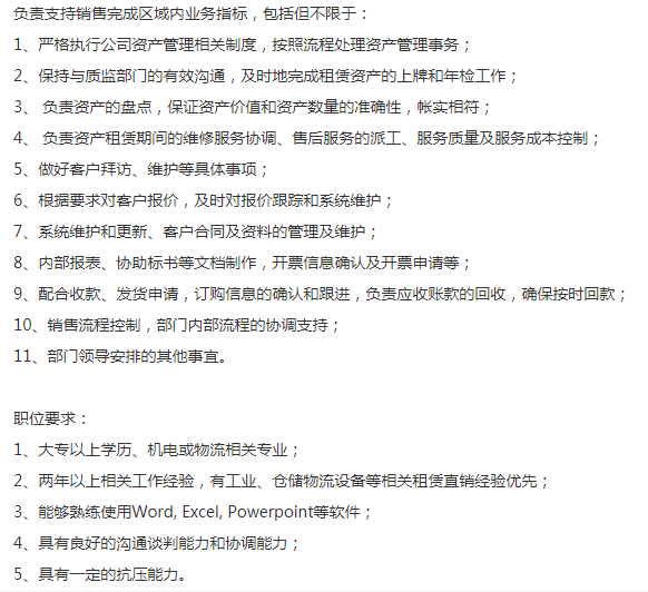 行业排名第一公司需要3枚【销售行政】,日常销售行政支持工作,不做销售,不背销售指标