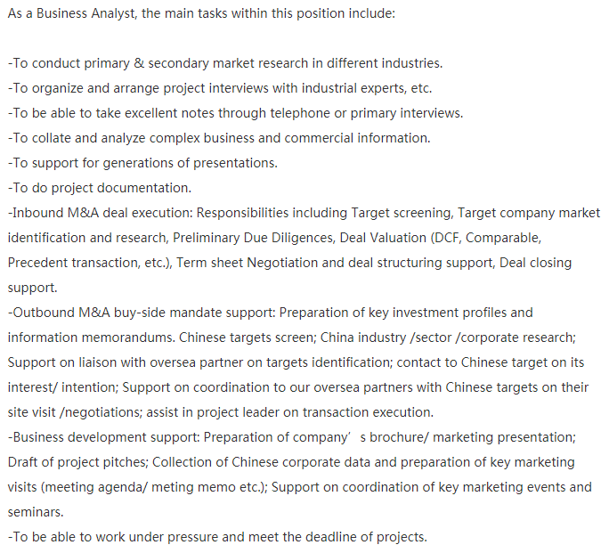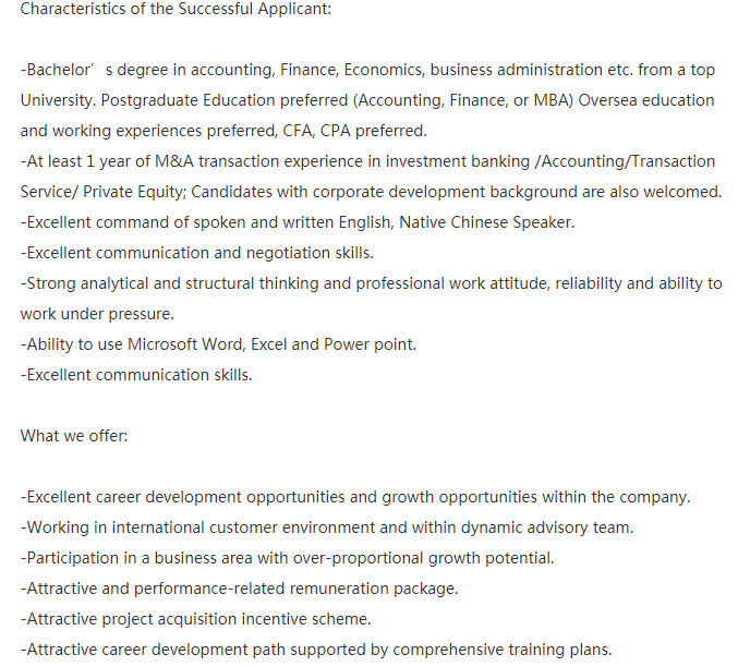 有没有做过投资并购方向咨询的人呀?德资咨询公司要个咨询顾问,要有兼并购方向咨询2年左右经验,全本,英文好,薪资预算10-15k左右,全额交金,年假15天,江苏路上班