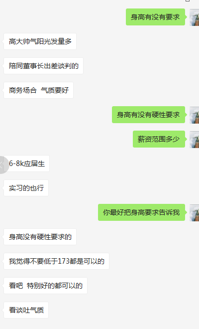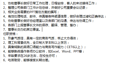 上市集团公司董事长要个助理 长得帅点 全日制本科 只看应届生男生 身高173以上就可以 谈吐气质要好 薪资7-8k 浦东上班