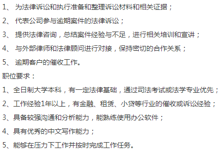 大型融资租赁公司招催收(诉讼方向),6-12K,坐标12号线提篮桥,福利多、办公环境好,交通便利