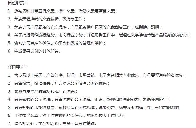 知名轻奢服装品牌需要文案策划,薪资6-8K,人广上班。