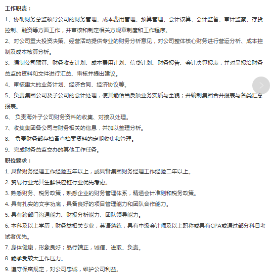 要求:会英文,看英文合同,懂国外法律,贸易行业财务背景,中级会计师以上,35岁以下,男女不限,形象良好,4号线上海体育馆附近上班