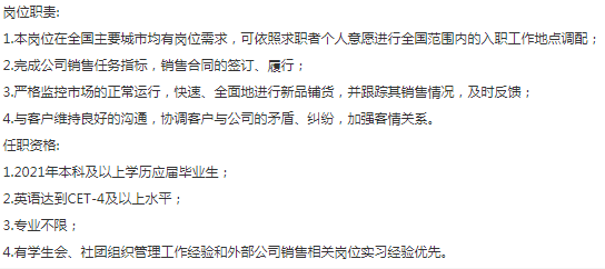 知名乳业上市公司招营销管培生,薪资6K-8K,要求会英文,一本及以上学历,4号线蓝村路附近