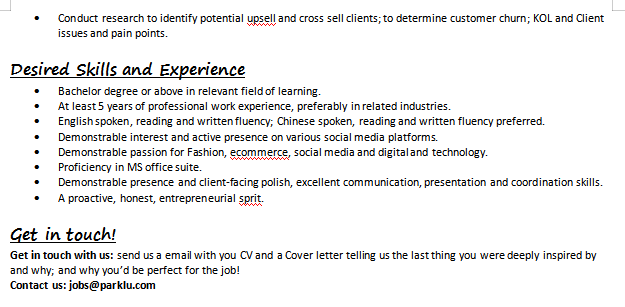 美资做kol大数据平台的企业需要一个客户经理:全本,英文流利,5年以上客户管理经验,有数字营销背景,预算20k以内都可以谈,8号线大世界