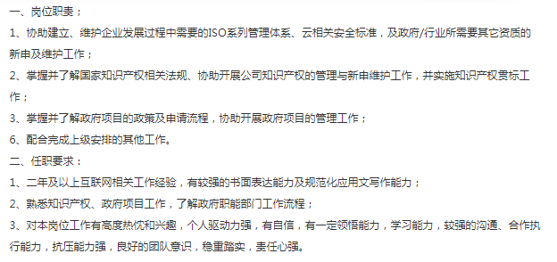 互联网IT公司,招政府项目专员,28岁以内,政府项目申报、知识产权申报以及贯标,一定要会的,薪资10k左右,年底13薪,10号线五角场上班
