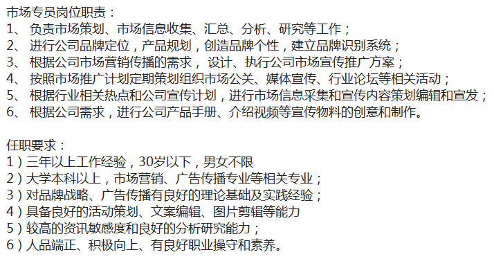 岗位要求