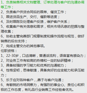 职位:销售助理