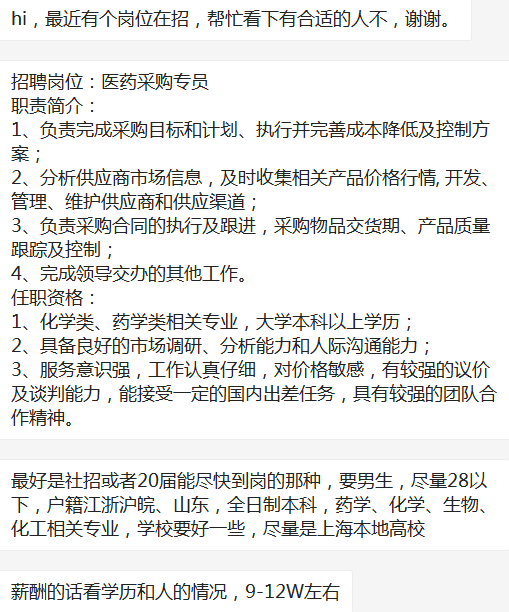 国药要医药采购,只能男生,医药相关专业的,28岁以下,应届生也看,急招岗
