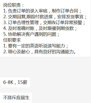 上市公司要个订单助理,6-8k。15薪,张江高科上班