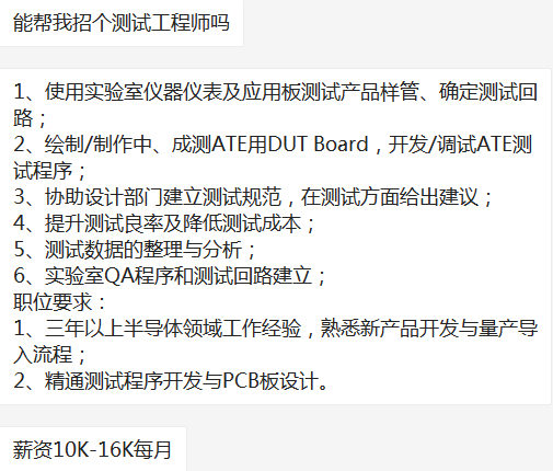 有没有半导体行业的测试工程师要找工作的,10-16k。张江高科附近上班。上市公司要