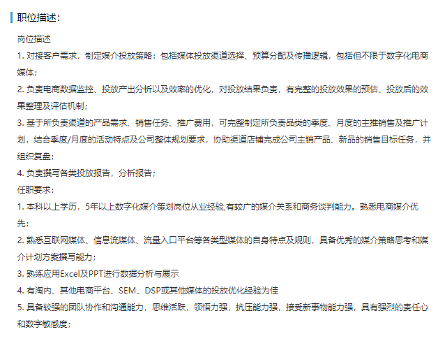 要求:全本及以上学历,4年或以上相关工作经验,看人定薪,全额交金,补充医疗险,至少13薪,上班时间10-7,地址近:8/10老西门&新天地