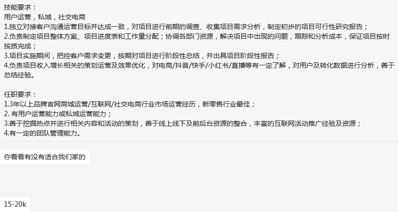 数据营销公司要项目经理,薪资15-20K,年终奖金其他另算,要求看JD,也可参考上面简历内容,位置:2号线娄山关路