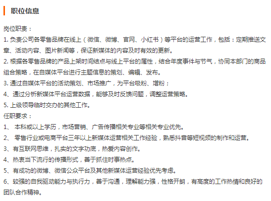 岗位【新媒体运营专员】
