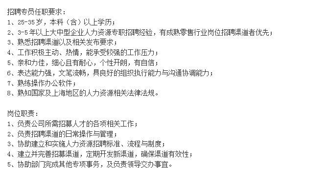 资深招聘专员/主管 市场分析师
