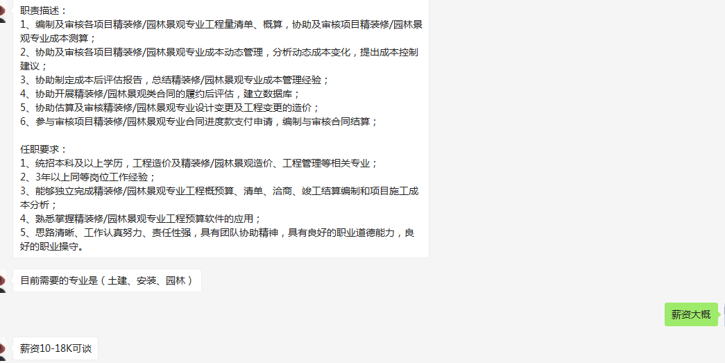 目前需要的专业是(土建、安装、园林)。